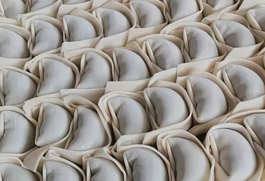 Dumplings av forskjellige former og fyllinger med høy hastighet.